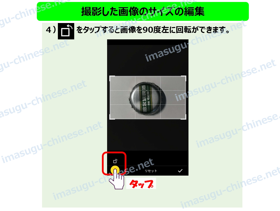 画像の向きの変更が必要であれば、右下の回転アイコンをタップして90度回転が可能です。