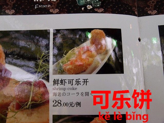 「可乐饼(kě lè bǐng)」これはクロケットの音から付けた中国語。