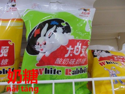 上海で見かける白いウサギのキャラメルをご存知でしょうか?中国語で「奶糖(nǎi táng)」は「キャラメル」の意味になります。