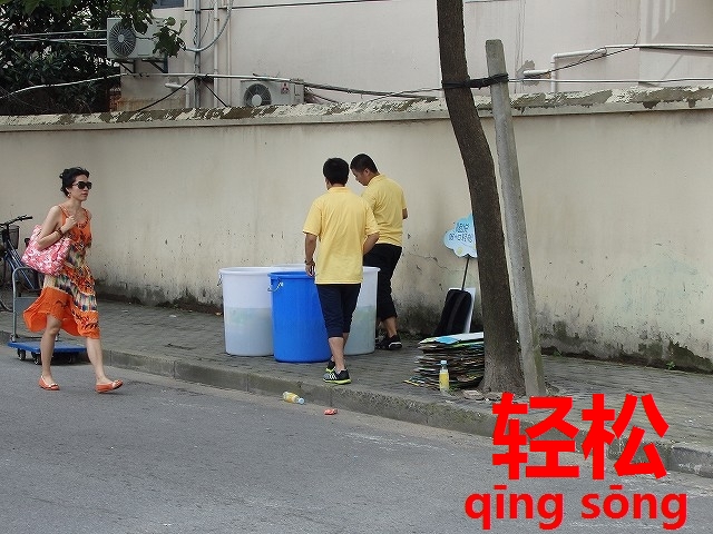 大型バケツを準備。そこから冷やしたドリンクを補充していました。