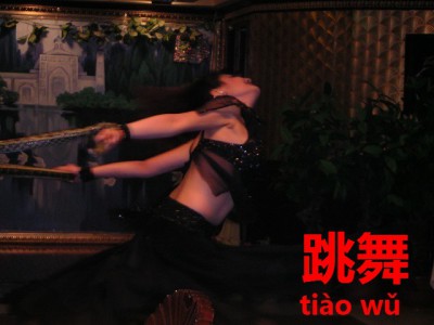 新疆料理屋での一コマ。この女性は新疆族ダンサー。新疆ミージックに合わせ、踊る姿は上海を忘れて新疆旅行気分。