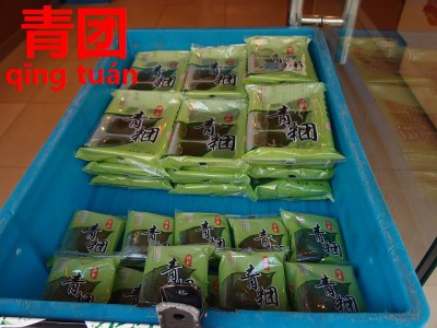 この季節限定のスイーツ、草だんご。画を見る限り日本の草だんごよりも、化学的な発色の良い色をして、食欲をソソられないのですが、商品には日本の草だんごと同じ自然な色の草だんごもあります。
