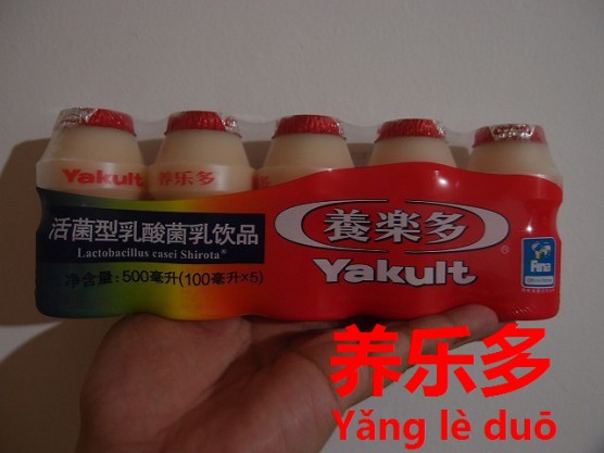 広東省を除く中国大陸と台湾ではヤクルトの中国語は、养乐多(Yǎng lè duō)