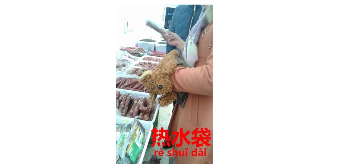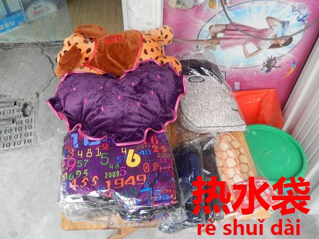 この季節になると必ず見かけるこの品。中国の湯たんぽは既に水が袋詰されていて、お湯を準備する必要はなし。
