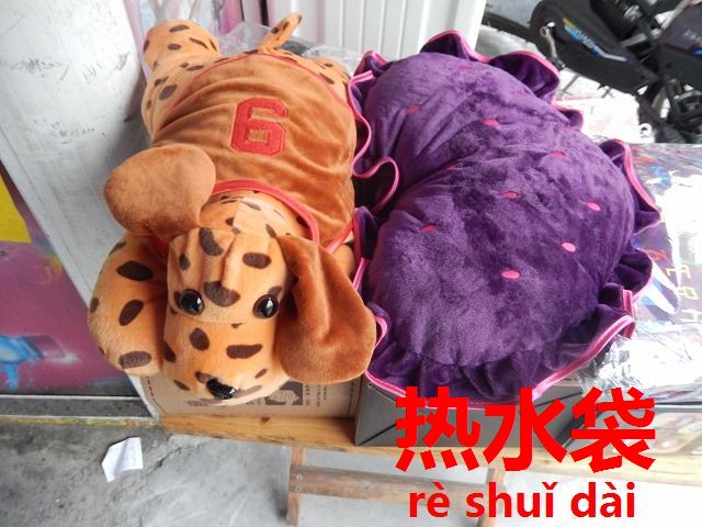 ここの店には名前が書いていました。热水袋(rè shuǐ dài)熱い、水の袋。そう、湯たんぽです。