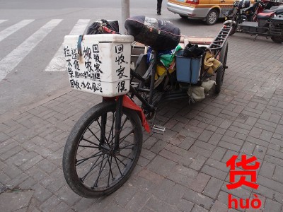 三輪車に書かれていた「送货(sòng huò)商品を届ける」